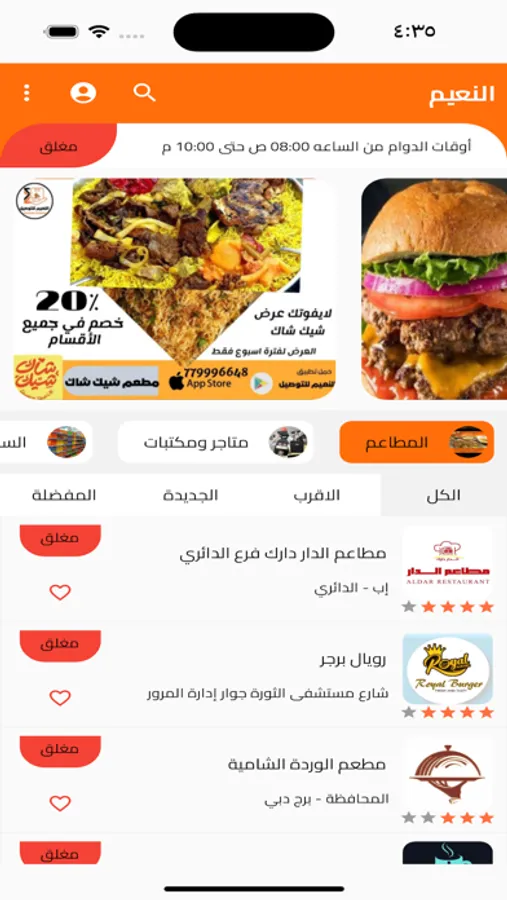 يحتوى تطبيق النعيم للتوصيل …