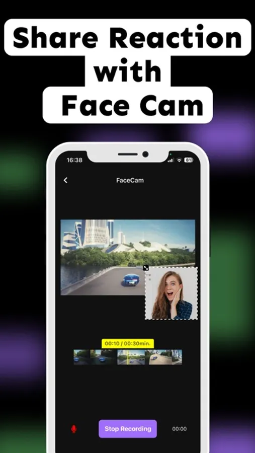 Welcome to Screen Recorder+Face Cam, the ultimate screen recording and face cam app that brings your mobile gaming and app experiences to life! Whether you're battling it out in epic gameplays or exploring intriguing apps, Screen Recorder+Face Cam lets you record every second of your screen while capturing your real-time reactions.