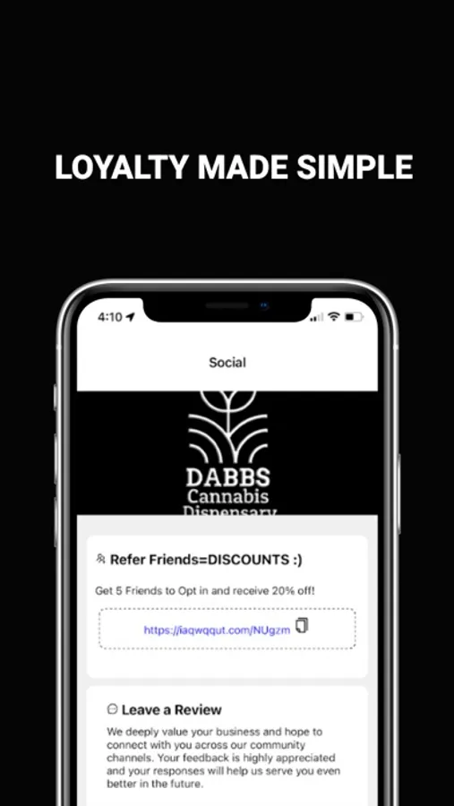With your own personal referral link, you will be able to earn more points for every friend you refer to Dabbs.