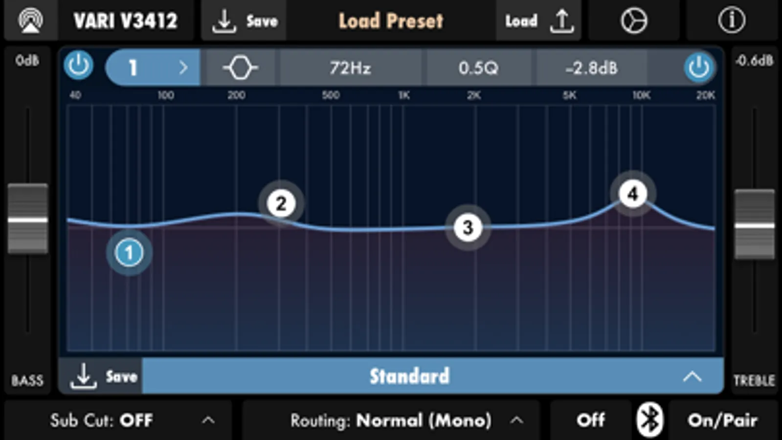 Sub Cut–this is a menu on the hardware, and also on the app, that lets you enable/disable a low cut filter (V4112/V4115 also allows cut off frequency to be selected)