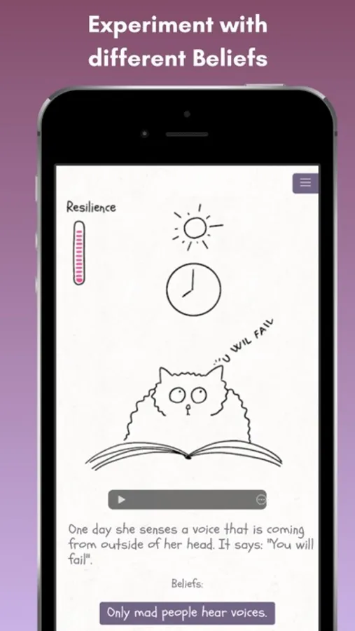 DISCLAMER: This app is not a therapeutic tool. It is merely a game that teaches some mental coping mechanisms. It does not replace or act as psychotherapy.