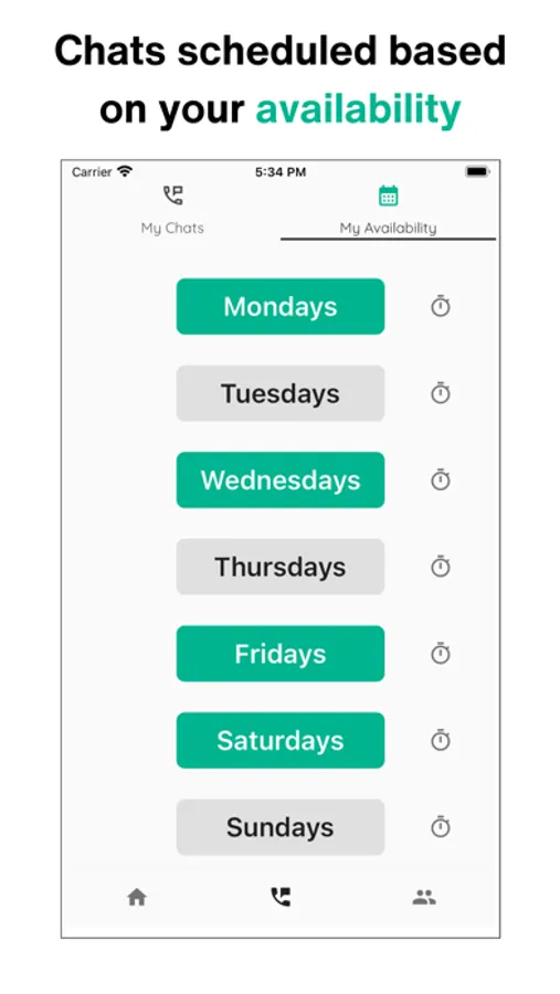 • Every day, Crossworlds will try to schedule you a 15-minute chat with one of your friends (if you’ve enabled this feature for that particular friend). If you've told us you're available that day, you'll get a notification in the morning about who we've matched you with and at what time.
