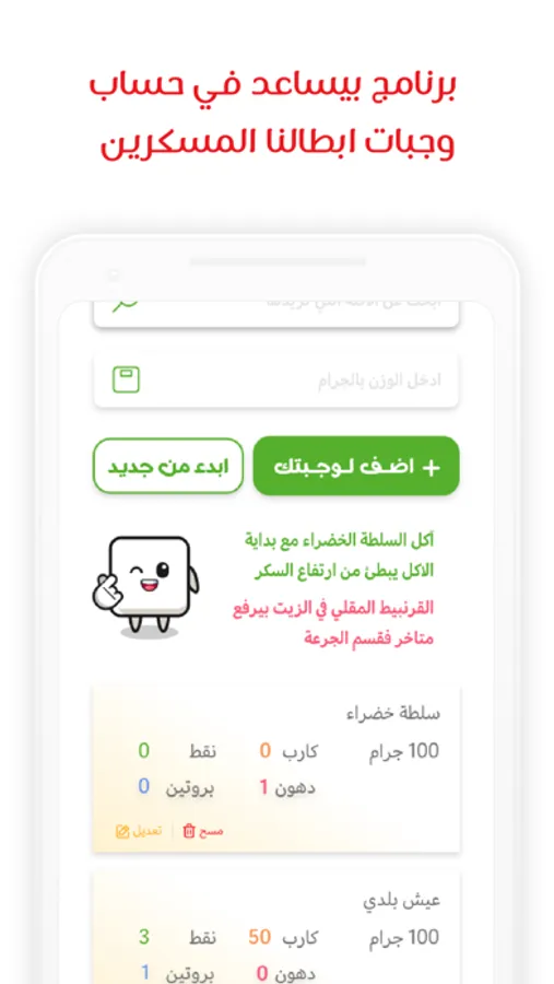 ابلكيشن عربي بيحسب الكارب والتقاط في وجبات ابطالنا المسكرين