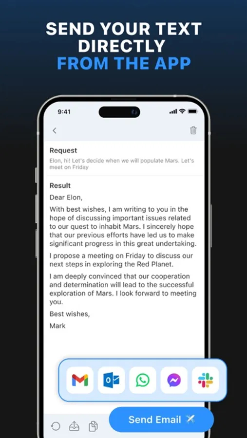 Our app has got you covered whether you need to write to your friend, partner, or colleague. It caters to the needs of professionals, students, and anyone striving to enhance their writing abilities. With its robust AI technology, the app excels at proofreading, grammar checking, and providing valuable suggestions to elevate your writing.