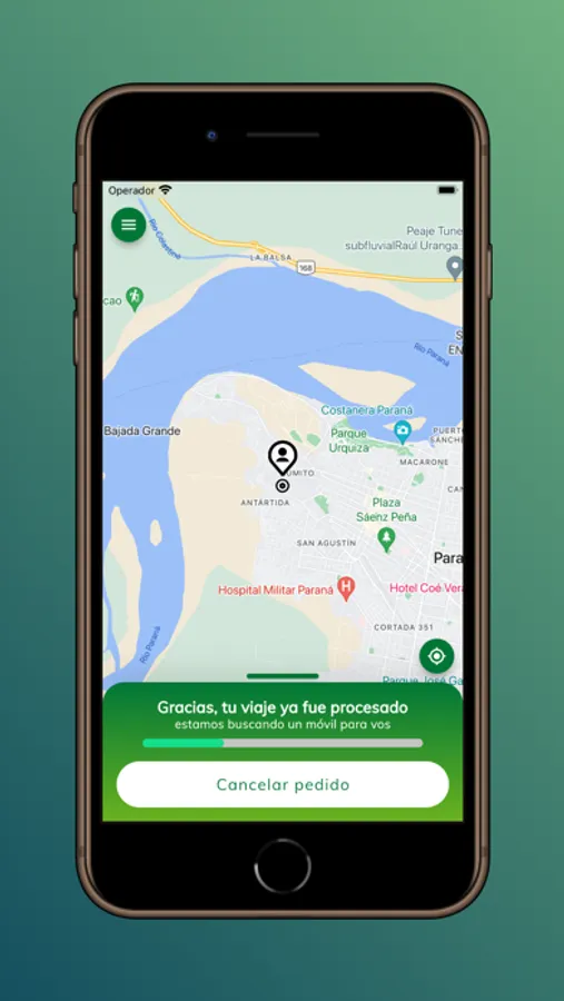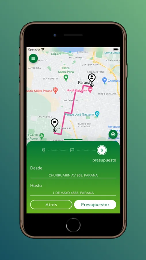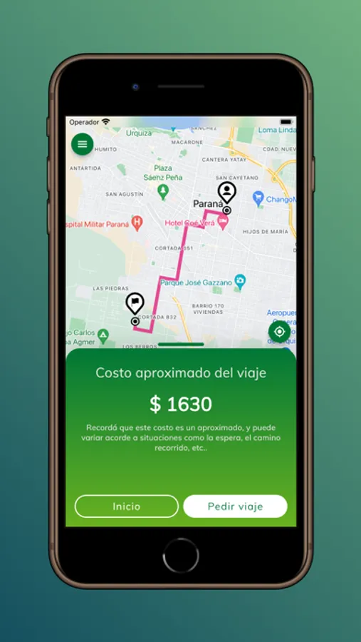 - Solicitud de viajes desde una ubicación elegida sobre un mapa o carga manual de calles.