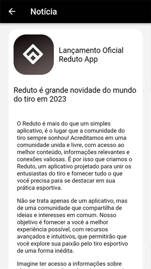 O Reduto é mais do que um simples aplicativo, é o lugar que a nossa comunidade sempre sonhou! Acreditamos em uma comunidade unida e livre, com acesso ao melhor conteúdo, informações relevantes e conexões valiosas. É por isso que criamos o Reduto, um aplicativo projetado para unir os entusiastas do segmento e fornecer tudo o que você precisa para se destacar em sua prática esportiva.