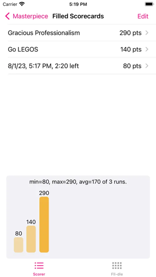 * Graph of scores to monitor progress over time, plus basic statistics on saved scores.