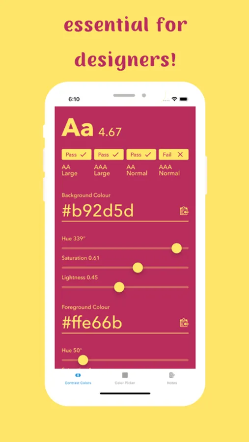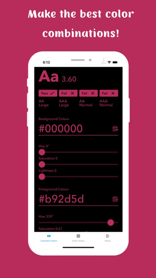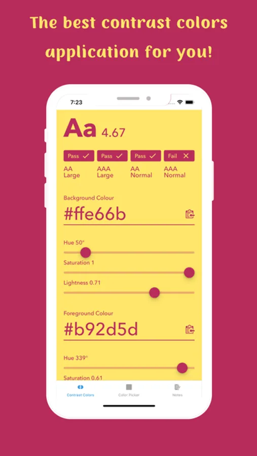 This app tests the Contrast of your Background color and Front color for visual comfort and accessibility. You can use it to visualize different color combination palettes for your Website design, Image design, Fashion design or Building Interior design.