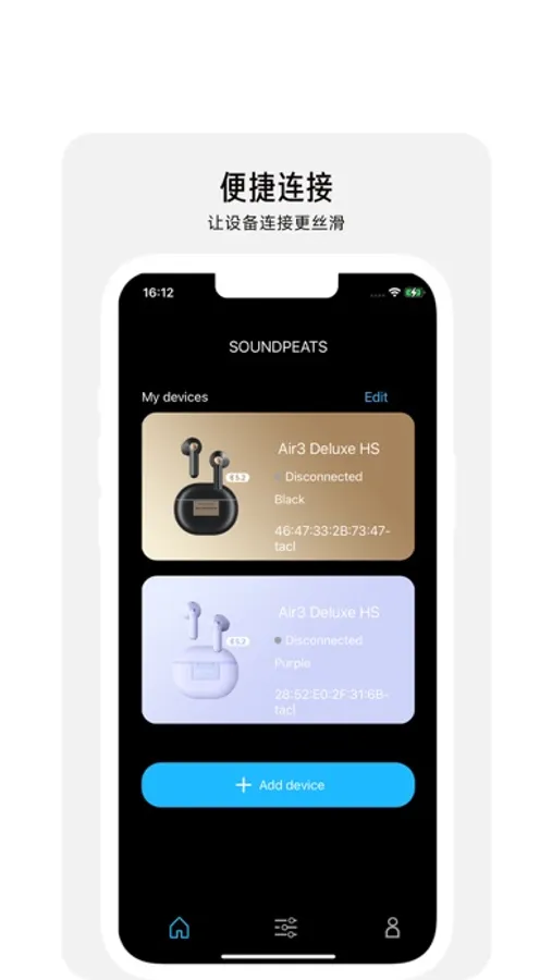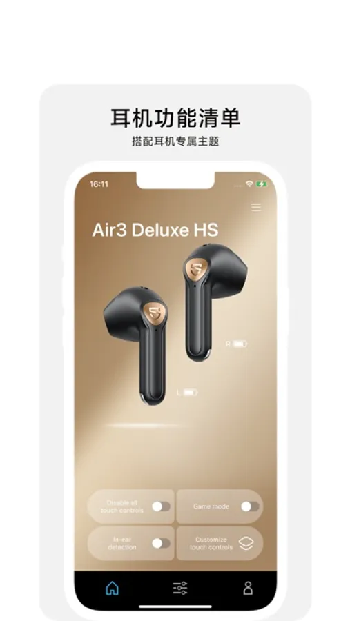 The SOUNDPEATS series Bluetooth earphones come with a dedicated app that offers an enriched user interface, showcasing hidden functionalities within the products. It enables quick headphone pairing, customizable gesture controls, volume adjustment, call handling, and wear detection, enhancing the value and playability of the products. Moreover, the app provides firmware upgrade options, allowing your products to transform and upgrade at any time.(Note: This version only supports SOUNDPEATS Air3 Deluxe HS headphones.)