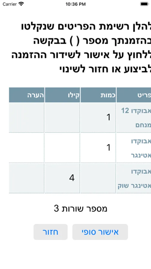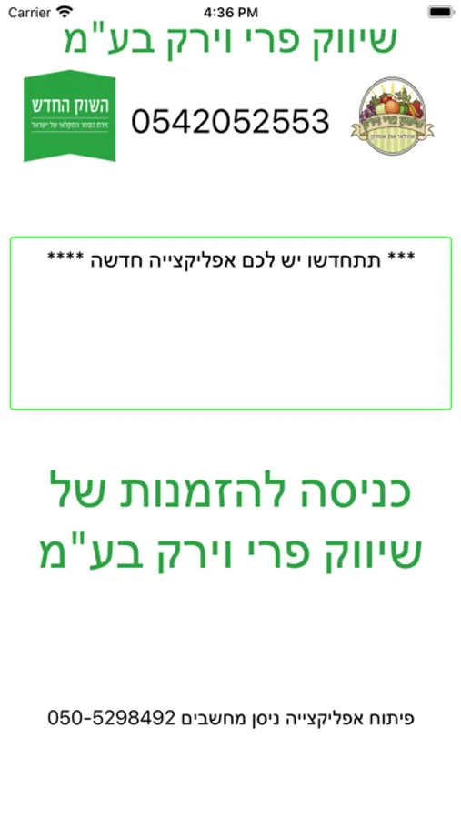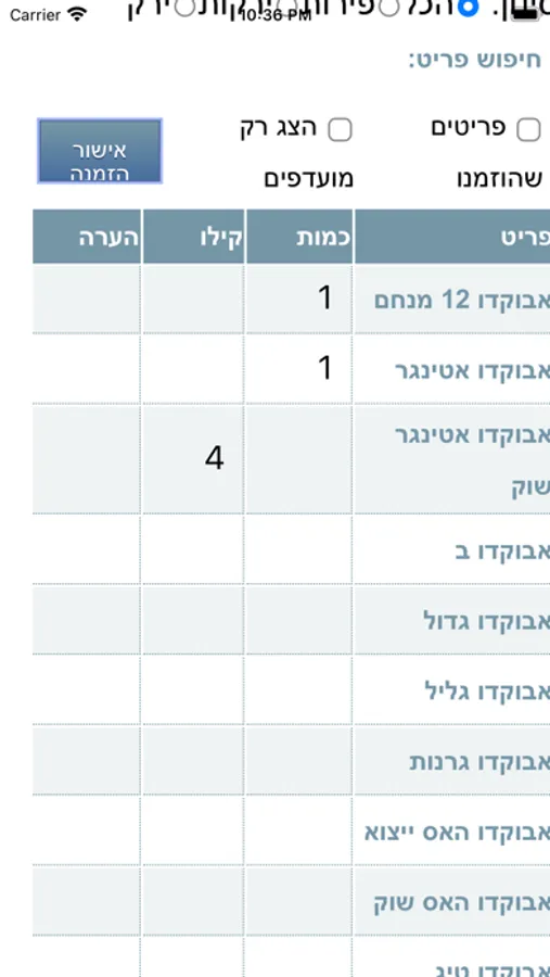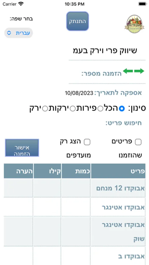 שיווק פרי וירק בע"מ - הזמנות מקוונות - אפליקציית הזמנות פנימיות ללקוחות של שיווק פרי וירק בע"מ
