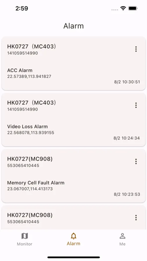 Rich reports: Emergency, no video signal, illegal door opening, hard disk error, overspeed, motion detection, long parking time, temperature, GPS signal loss...