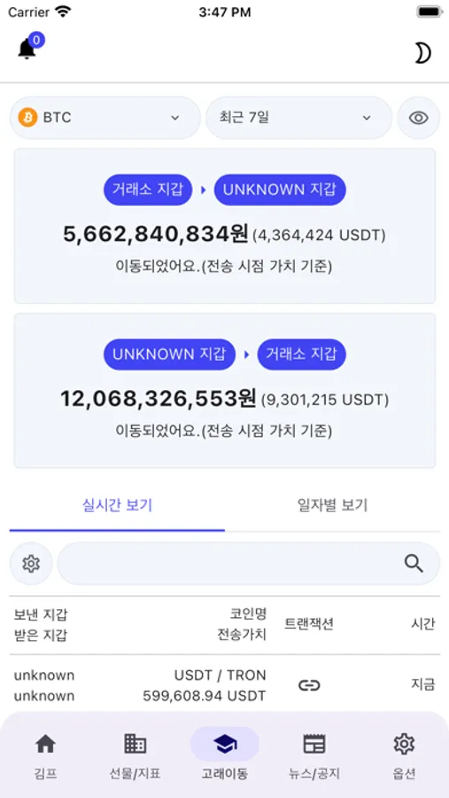 고래는 암호화폐 시세 비교를 통한 김치 프리미엄 정보, 각종 선물/지표 정보와 고래 지갑을 추적한 이동 내역을 제공합니다.