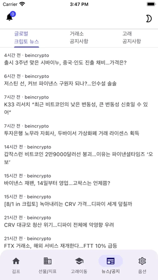 각 거래소 및 주요 언론사의 뉴스와 공지사항도 한 번에 확인하실 수 있습니다.