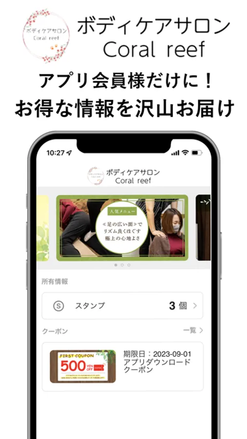 【ボディケアサロンcoral-reef】の公式アプリが登場!!