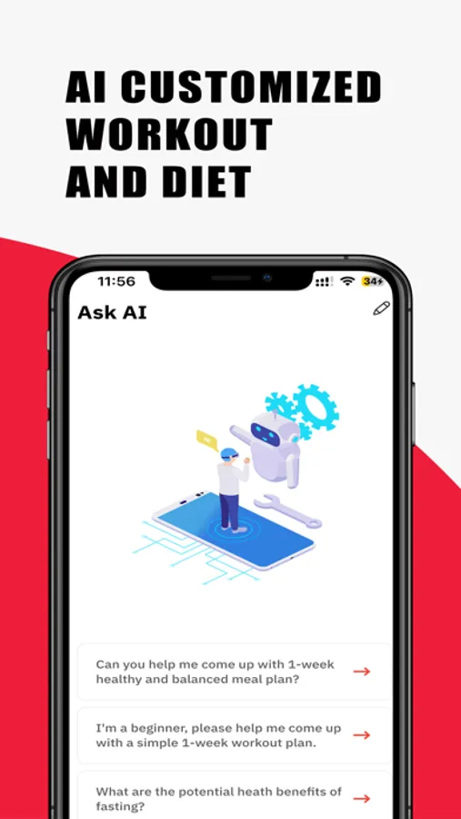 Personalized workout tailored by real human coaches, Diet plan formulated by real human nutritionist,Calorie tracking,Fasting tracking, AI tailors any exercise and diet plan you want to your specific needs.
