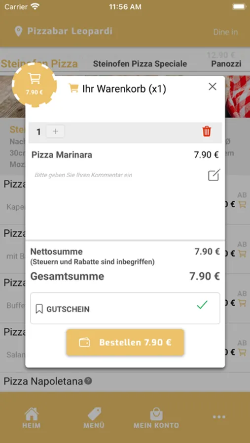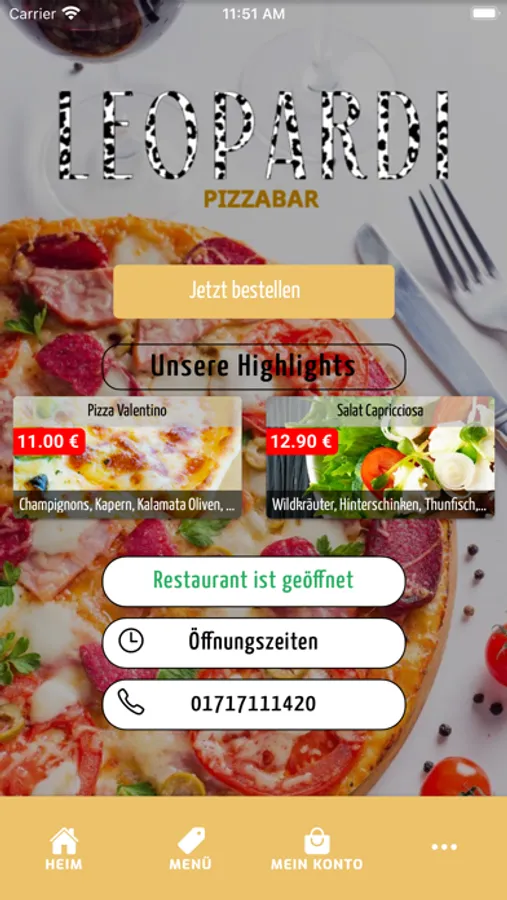 Herzlich Willkomen bei Pizzabar Leopardi in Aachen. Wir bedienen unsere Kunden mit Italienische Pizza, Vegan, Pasta Speisen und machen das seit mehreren Jahren aus Leidenschaft. Wir freuen uns immer wieder neue Kunden unsere Herkunft näher zubringen und möchten ihnen die Möglichkeit geben, ihre Bestellung unkompliziert und total einfach abzugeben. Aus diesem Grund, möchte wir ihnen unsere neue App und unseren Online Shop vorstellen, mit dem Sie problemlos über Paypal, Bar und Kreditkarte zahlen können.