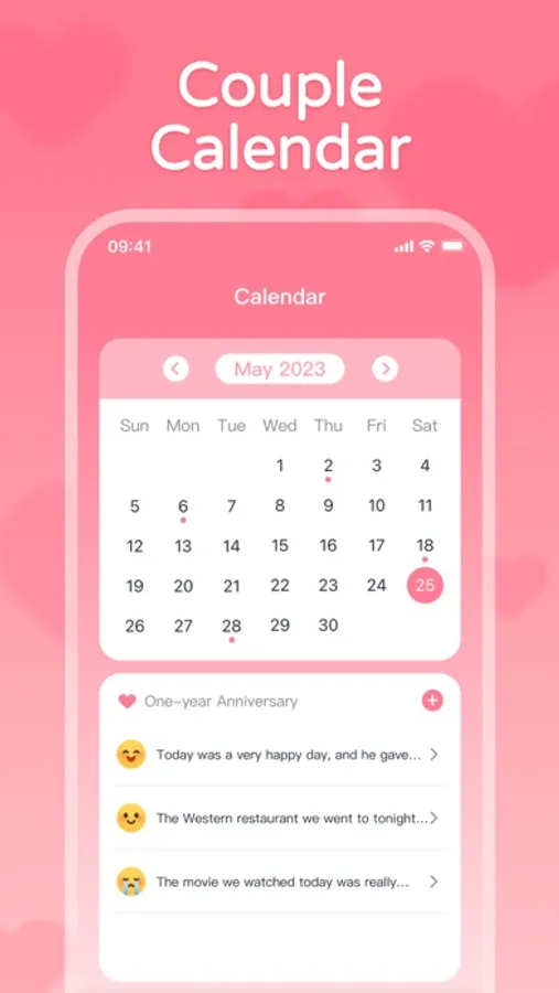 - Intimate Reminders: Effortlessly set dates and receive thoughtful reminders when your anniversaries approach, ensuring you never miss a special moment to celebrate together.