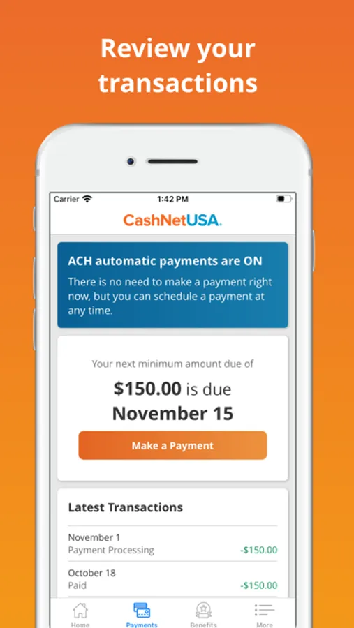 Note: This app only supports existing CashNetUSA customers with an active line of credit. If you are a payday or installment loan customer, please log in at www.cashnetusa.com to manage your account.