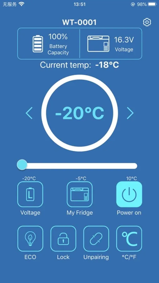 This is a remote controller app for the portable solar battery fridge freezer. By connecting the portable solar battery fridge freezer through the app, you can check the temperature of the freezer, voltage and other information, as well as temperature setting and control of the switch. Convenient for your experience with the portable solar battery fridge freezer.
