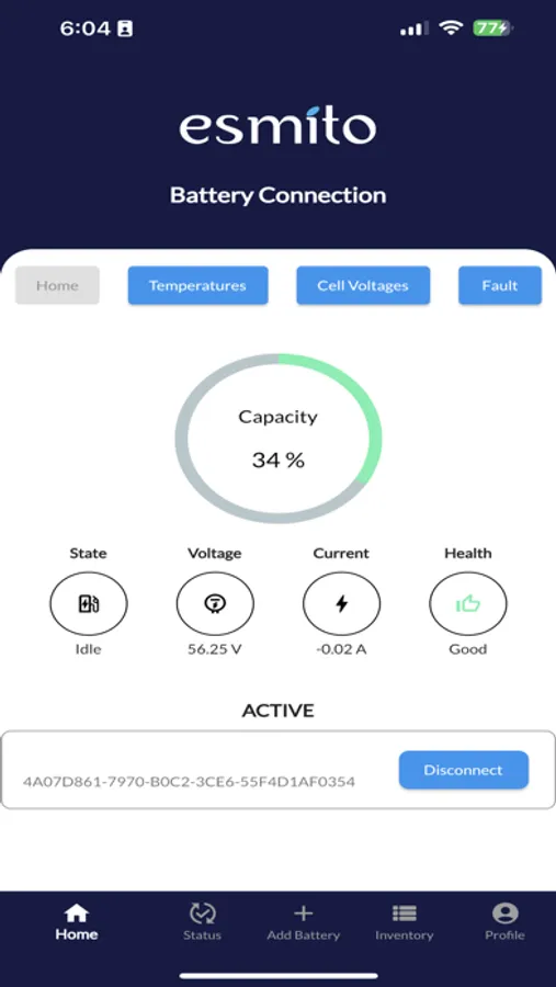Introducing Esmito Battery, the ultimate Smart Battery companion app that connects seamlessly via Bluetooth. Experience real-time data readings from your BMS, giving you insights into SOC, Cell Voltages, Sensors' Temperature, and Pack Fault status.