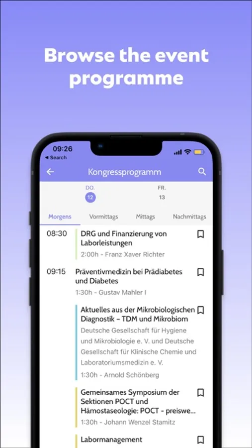 Bereiten Sie Ihre Kongressteilnahme ganz einfach mithilfe der App vor, nutzen Sie sie zur Orientierung vor Ort und finden Sie alle relevanten Informationen rund um das Programm, die Referierenden und die parallel stattfindende Industrieausstellung kompakt auf Ihrem Smartphone.