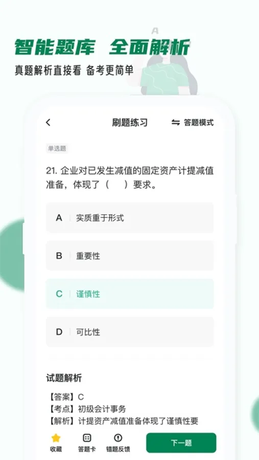 提供历年真题和专项考点的智能刷题、解析服务,题干全文翻译、答案解析,零基础无压力通关!助超百万学生顺利拿到初级会计职称、中级会计职称、注册会计职称职业资格证书!