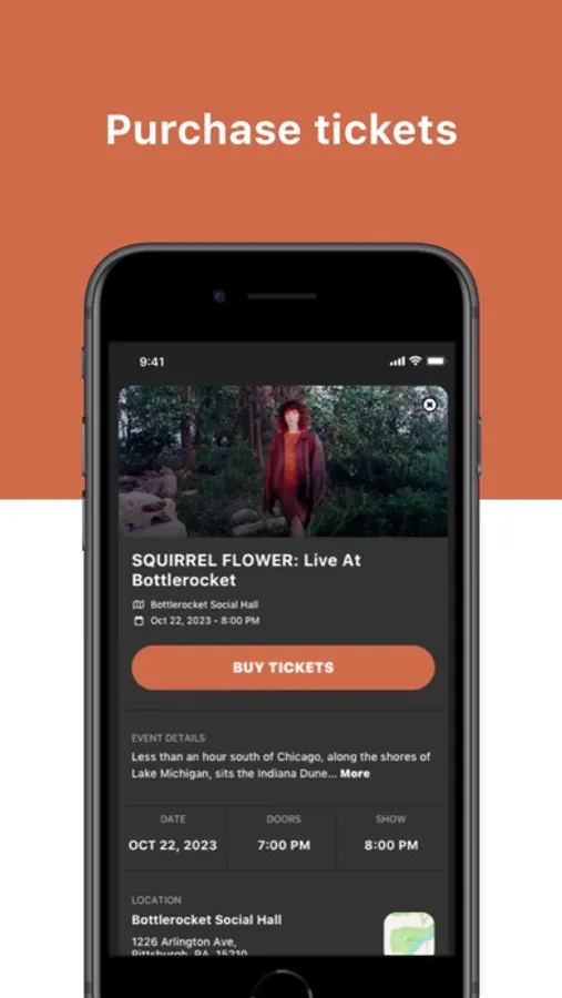 - Purchase and manage your tickets to any Bottlerocket concert or event