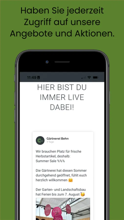 Nutzt also ab sofort unsere App und profitiert von vielen Vorteilen! Bis zum nächsten Besuch in Eurer Gärtnerei Behn!