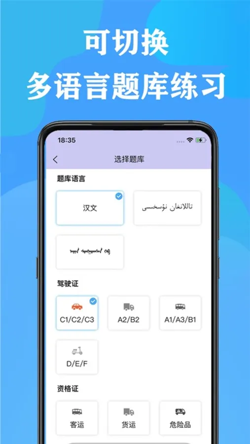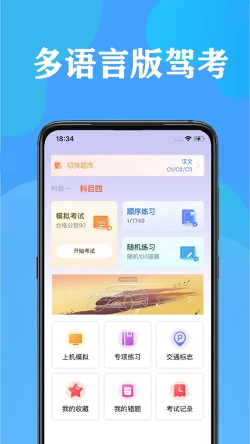 准驾考题库一款多语言版本的驾考在线刷题软件,包含汉语,少数民族语言(维吾尔语、哈萨克语、蒙古语),外语(英语、日语、韩语、法语、俄语)等多种语言的科目一科目四驾考理论考题。不仅提供中文版新规试题的同时、也为少数民族学员提供少数民族语言文字版本的题库练习,同时为外国人考取中国驾照提供科目一科目四试题练习。软件内试题同步相应地区车管所考题,考试通过率高,可放心选择使用。
