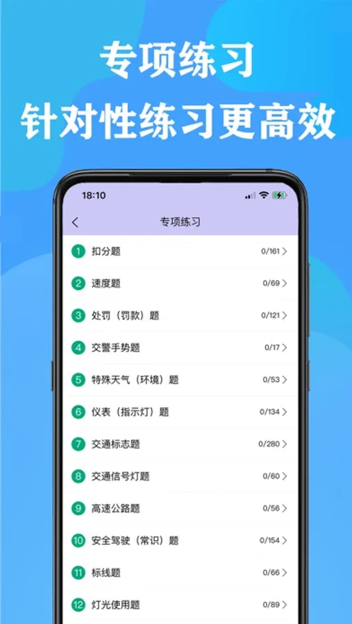 4. There are a variety of functions in the software for learning: special exercises, classifying test sites, and targeted exercises are more efficient. Real examination room simulation: Restore the examination environment and simulate on the computer in advance for more peace of mind.