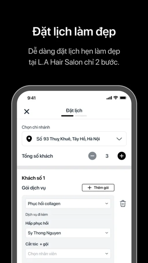 Với ứng dụng L.A HAIR SALON, bạn có thể: