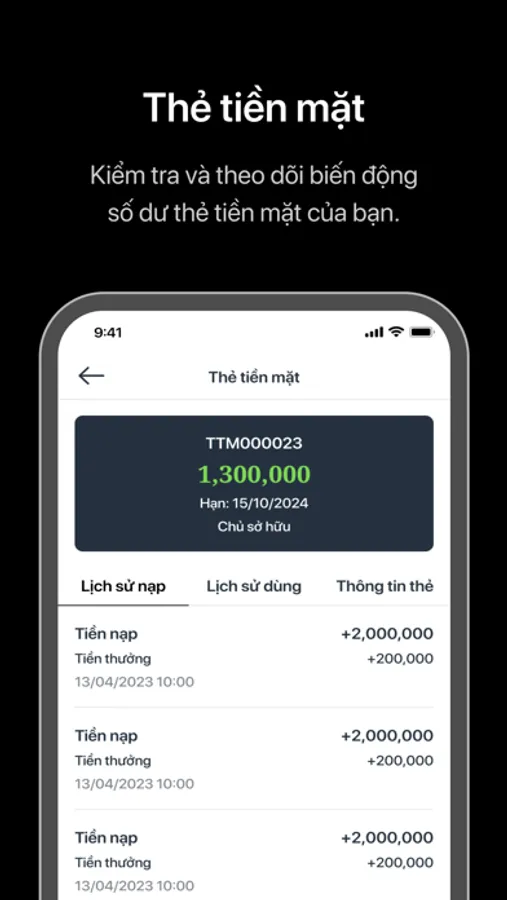 Kiểm tra theo dõi ngày hết hạn và biến động số dư thẻ tiền mặt của bạn.