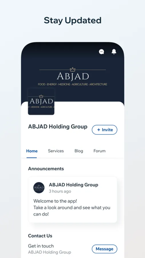 The ABJAD Holding Group app is unique because it brings the entire world of our diversified business operations to your fingertips. Whether you are an investor, partner, customer, or a curious onlooker, the app provides comprehensive insights into our company and services.
