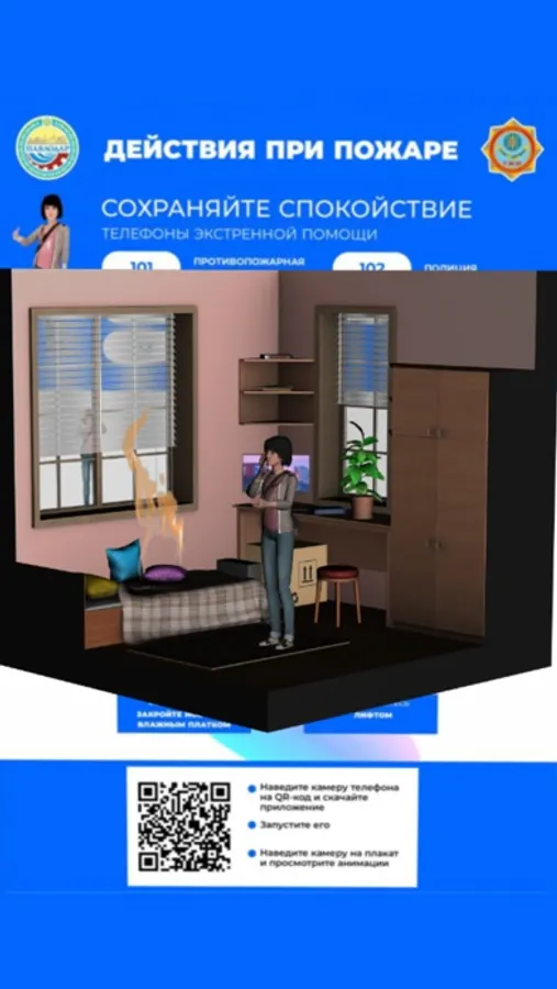 Наведите камеру вашего телефона на плакат с правилами безопасности во время пожара или на воде.