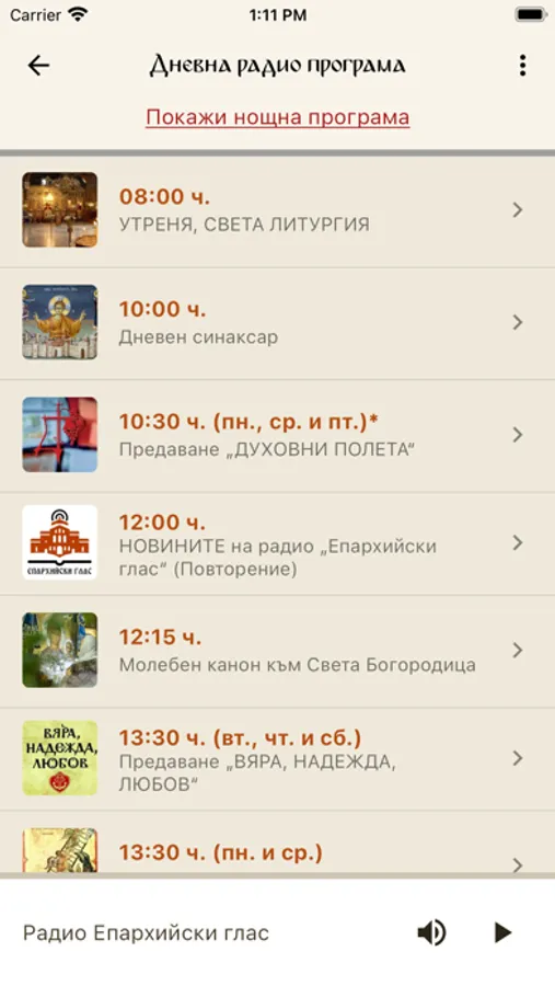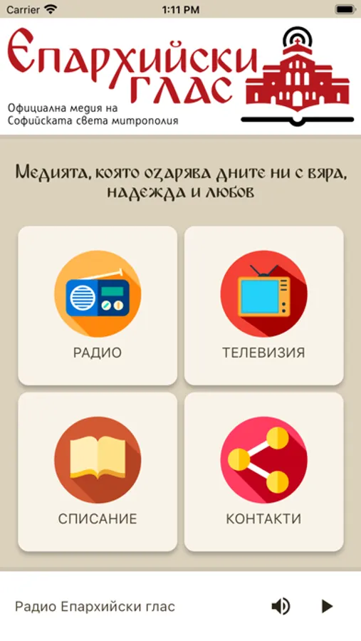 Превърнете своето iOS устройство в източник на християнска просвета и култура, като следите на живо онлайн радиото и интернет телевизията „Епархийски глас“, и разглеждайки виртуално страниците на едноименното списание.