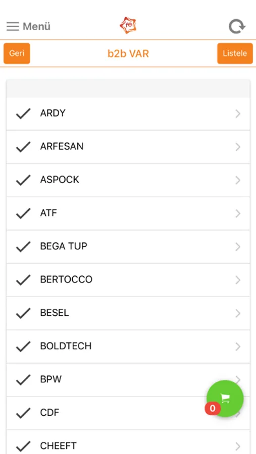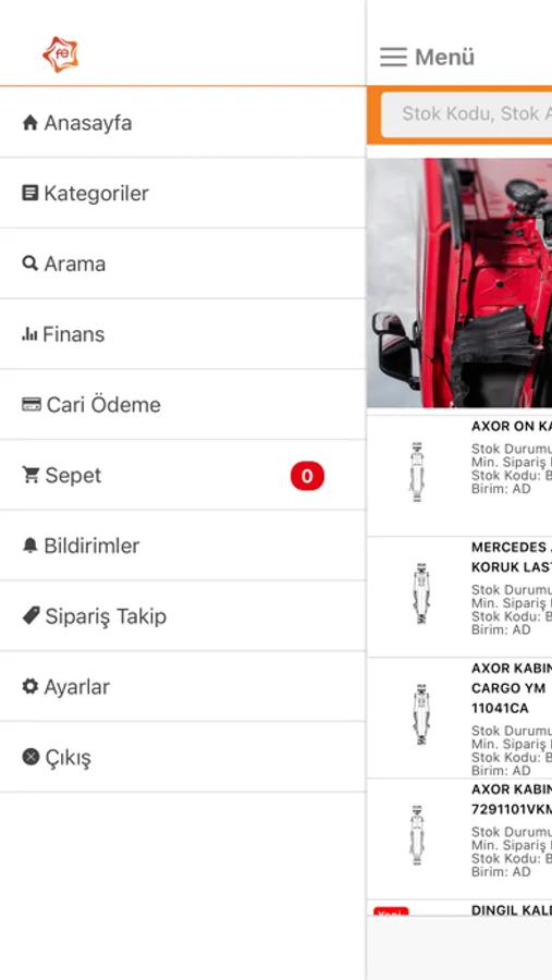 Femaas B2B Sisteminin Mobil Uygulaması.