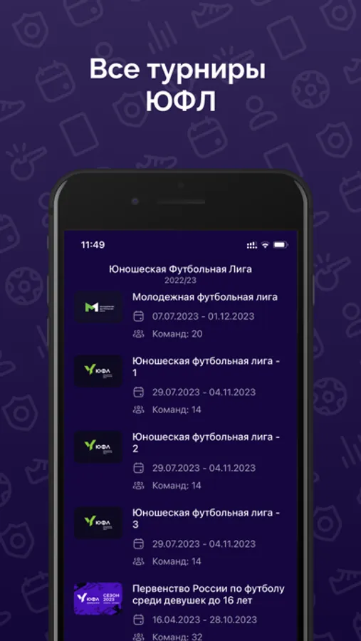 Юношеская футбольная Лига (ЮФЛ) — это проект по реформированию системы юношеских соревнований в России, новое решение для системы подготовки резерва. ЮФЛ объединяет в одной лиге футболистов разного возраста, помогая им в развитии в молодёжном, а затем и в профессиональном футболе. В приложении вы найдёте всё о турнирах ЮФЛ — календарь матчей и результаты, подробные протоколы матчей, всегда актуальная турнирная таблица и персональная статистика, последние новости и фотообзоры.