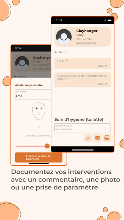 - Documenter vos actes infirmiers de commentaires, photos ou prises de paramètres