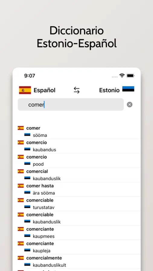 - Posibilidad de buscar a partir de palabras en Español o Estonio