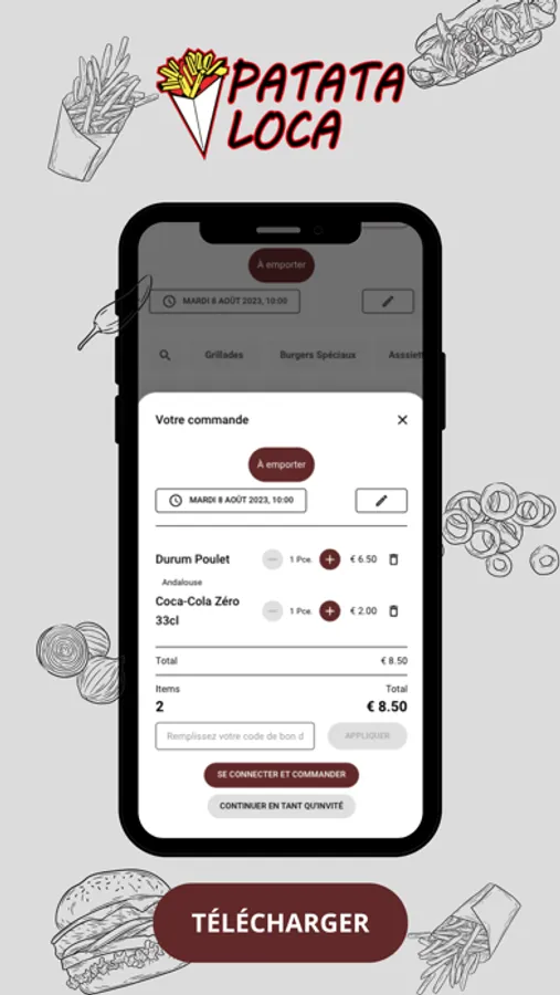 Où que vous soyez, avec l'application Patata Loca, vous pouvez commander sans souci parmi la vaste gamme.