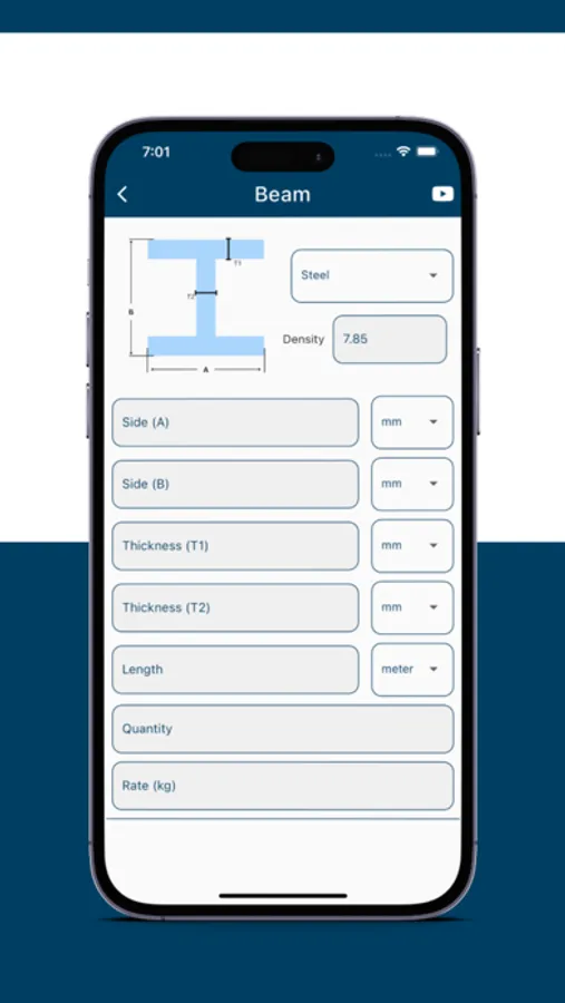Our app supports a wide range of steel types, including common shapes like I-beams, H-beams, angles, channels, plates, and more. Simply choose the specific steel type and dimensions you need, and the app will handle the rest.