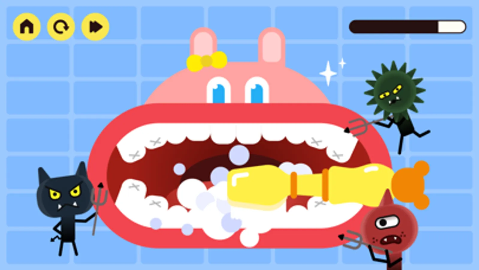 있는 도넛, 아이스크림, 초콜릿, 사탕들과 함께 즐거운 모험을 즐기고 모험이 끝난 뒤에는 친구들과 간식을 나눠먹고 마지막으로 신나는 양치질을 즐겨보세요!!