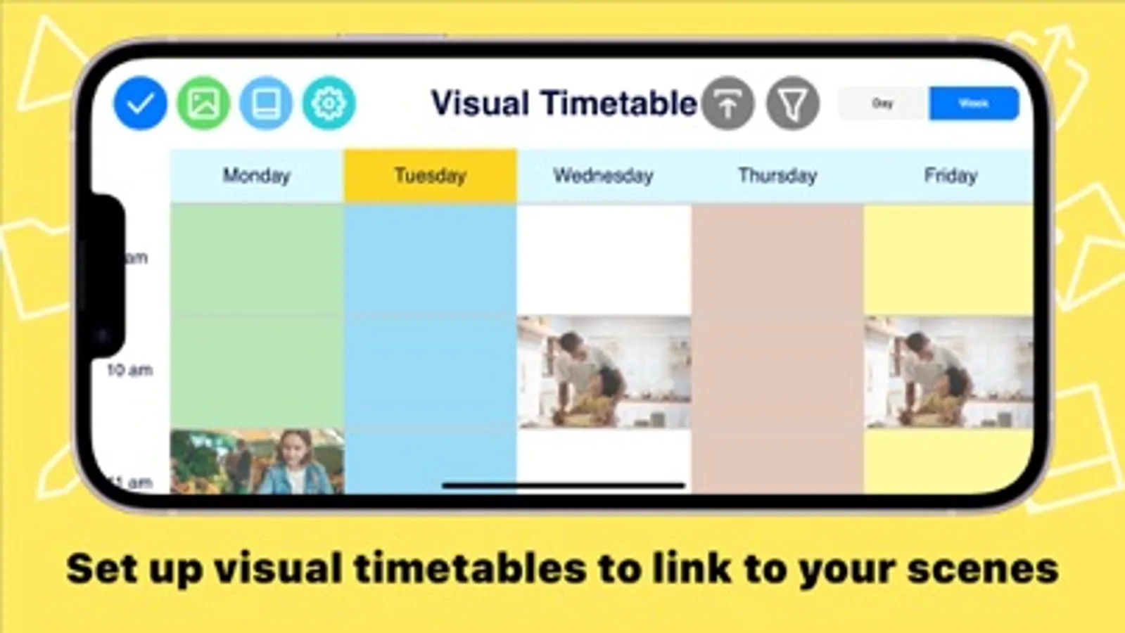 * Set up visual timetables