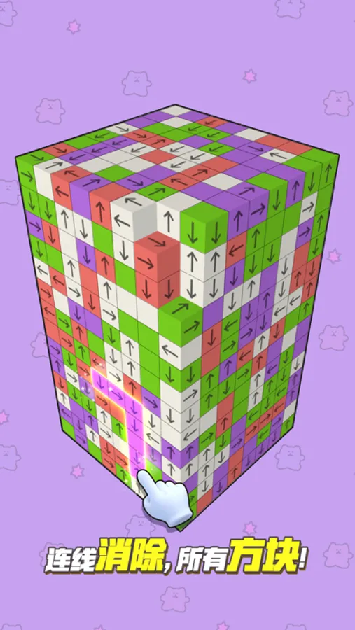 选择2个相同的方块,拖动方块至同一条线上,使两个方块对碰消除。注意两个方块中间需无任何阻挡才可对碰消除。合理规划,按序消除方块,以获得更高的分数和连击奖励。尽量选择连接线较短的方块,以节省时间。