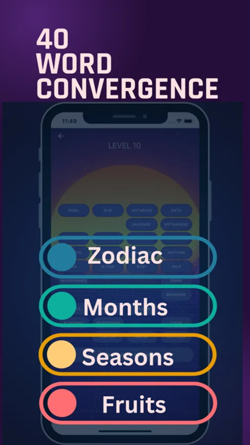 "Word Convergence" includes 200 challenging levels and an endless mode where you can play without any constraints. The game incorporates 40 different word groups, each posing fresh challenges for your brain.
