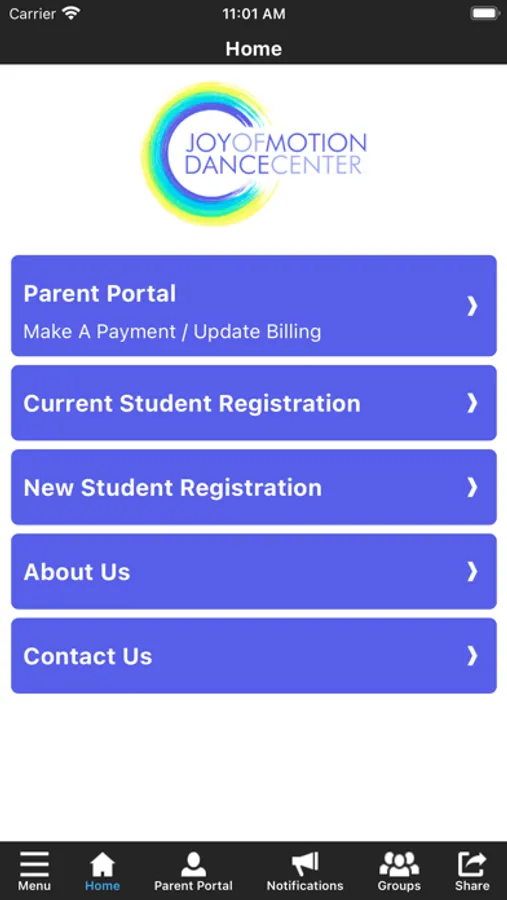 The Joy of Motion app allows you to manage your account with ease, register for classes and special events. You'll also receive important notifications about class changes, closings, registration openings, special announcements, and upcoming events.