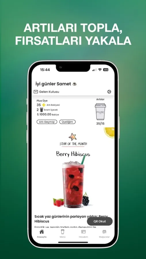 Pause+ alışverişlerinizde + kazanır, biriken +'larınızla hediye içeceğinizi alabilirsiniz. Şimdi siz de Basic ve plus üyelik avantajlarınından yararlanın.