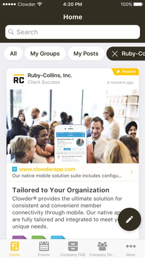 Ruby-Collins is providing a single platform for all go-to resources for all things RC. The app will keep you updated on the latest news and in touch will all company events and team members throughout the year. Easily read the latest news, quickly locate current and upcoming events, access company policies, find a co-worker’s contact information, and more, all at the tip of your fingers.