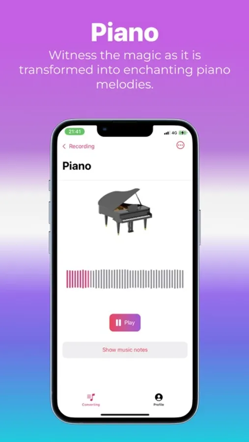 Transform to Piano Sound: Experience the magic as your recording is converted into enchanting piano melodies.