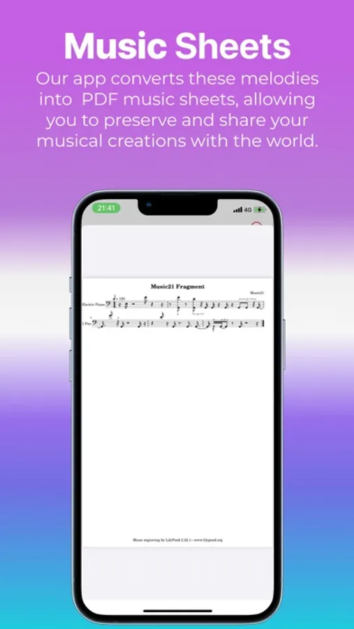 Generate PDF Music Notes: Get beautifully notated PDF music sheets, preserving your musical creations forever.